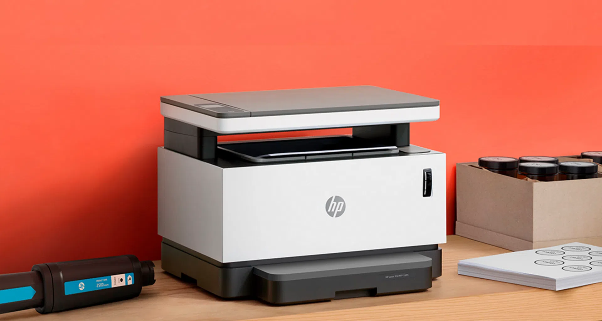 הקופסה הגדולה יכולה להיות קצת מטעה, אבל HP לייזר Neverstop 1200W זוהי מדפסת קומפקטית וקלת משקל המשתלבת היטב במשרדים עם עיצוב מינימליסטי. הודות לגודלו הבינוני, המשתמש יכול למקם את מדפסת בכל מקום בבית או במשרד מבלי לתפוס יותר מדי מקום.